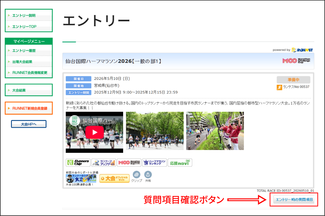 上記申込みにて、エントリーサイト(RUNNET)がアクセス集中により混雑する場合がございます。